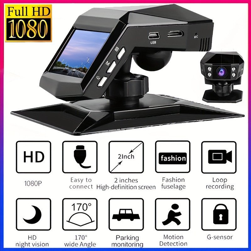 1080P Full HD Dash Cam Car Video Driving Recorder With Center Console LCD Car DVR Video Recorder, WDR 170° Wide Angle, Night Vision, Parking Monitor