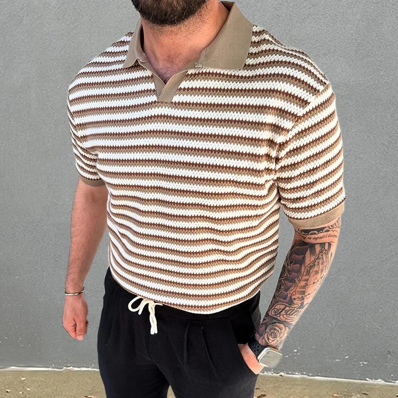 2024 Thin Colour Blocking Jersey Collar Short Sleeve Slim Pullover Shirt for Summer