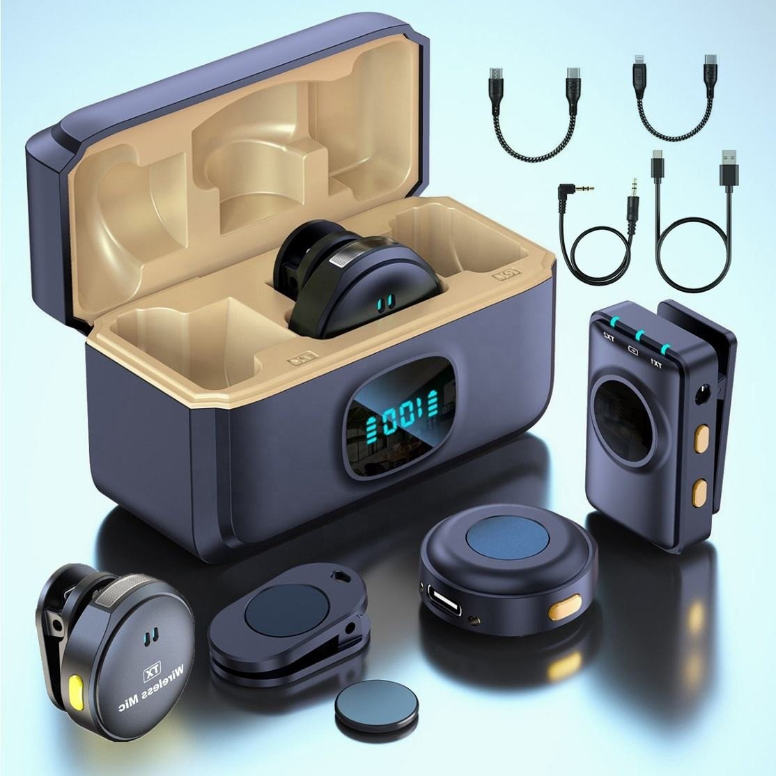 2Mic 3 in 1 Magsafe Magnetic Lavalier Lapel Clip Wireless Microphone with Charging Case Camera Phone Video Recording Mic