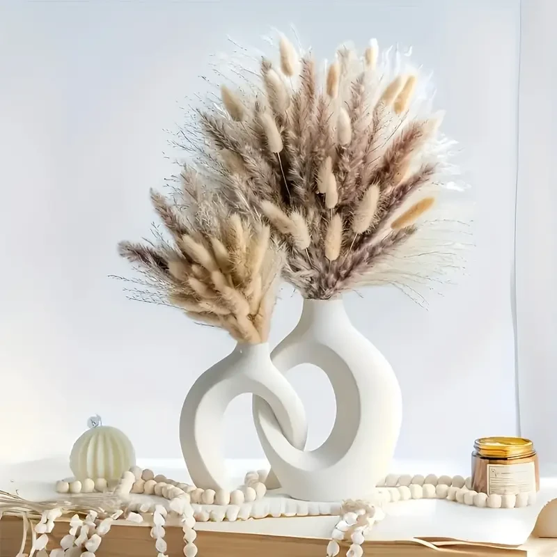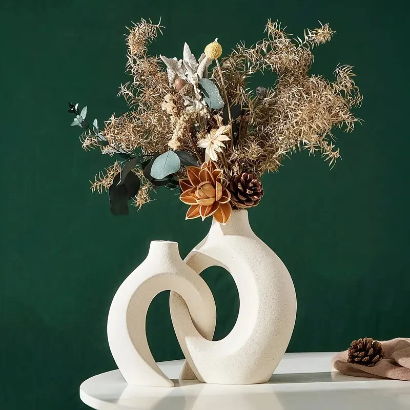 2pcs Set of Plastic Vase, Bohemian Style Decorative Vase, Geometric Pattern Plastic Vase, Nordic Heart Shaped Vase, Simple Decorative Vase for Hydroponic Flowers And Dried Flowers