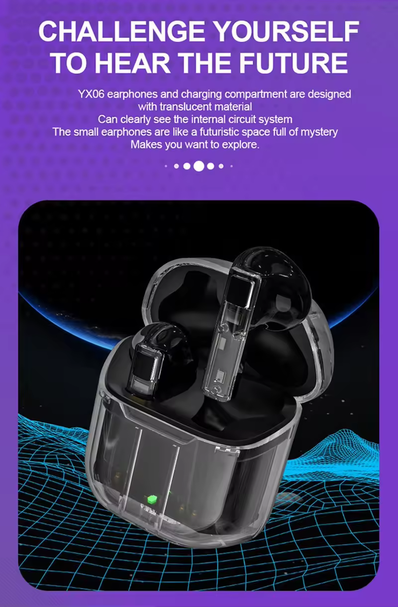 Crystal Tws Gaming Noise Cancelling Earbuds in Ear Headphones Earphone Transparent LED Wireless Earbuds Sports In-ear 4 Colors