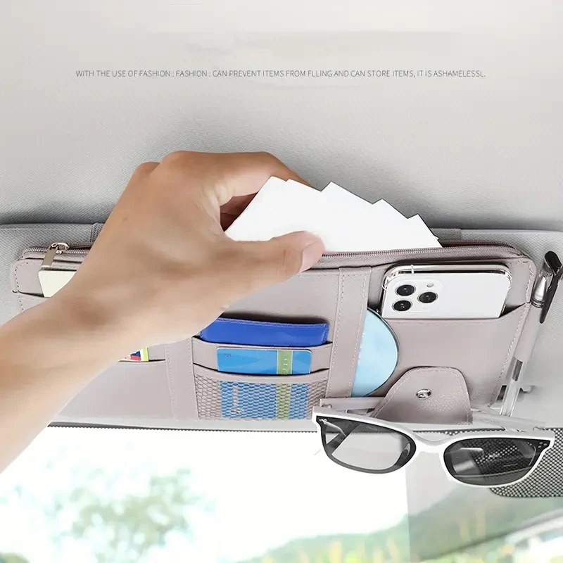 Faux Leather Multi-Compartment Dashboard Organizer with Glasses Holder, CD Slot, and Space for Phone, Wallet