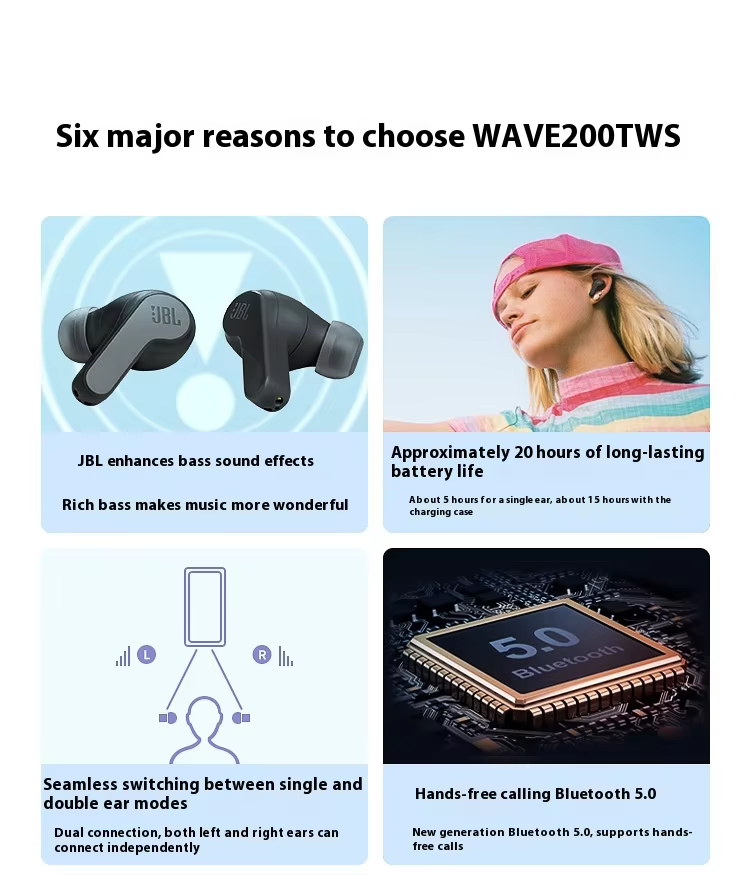 J.BL W200TWS Wireless In-Ear Bluetooth Sport Earbuds Headset Heavy Bass Long Endurance Noise Cancelling Waterproof Earphone