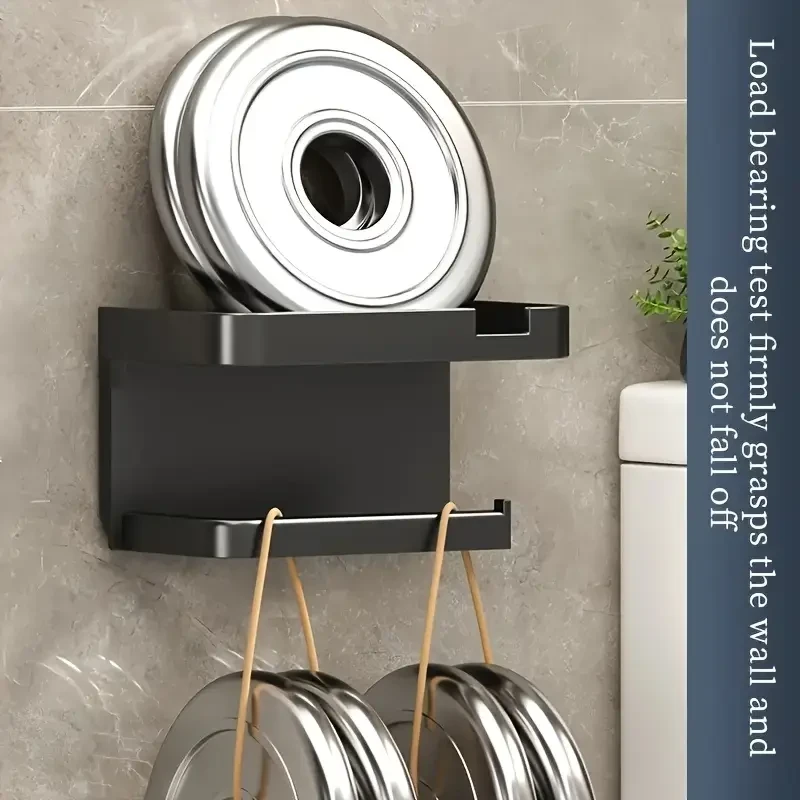 Luxury Self-Adhesive Wall-Mounted Bathroom Tissue Holder with Storage Rack – Sleek Black High-Gloss Finish
