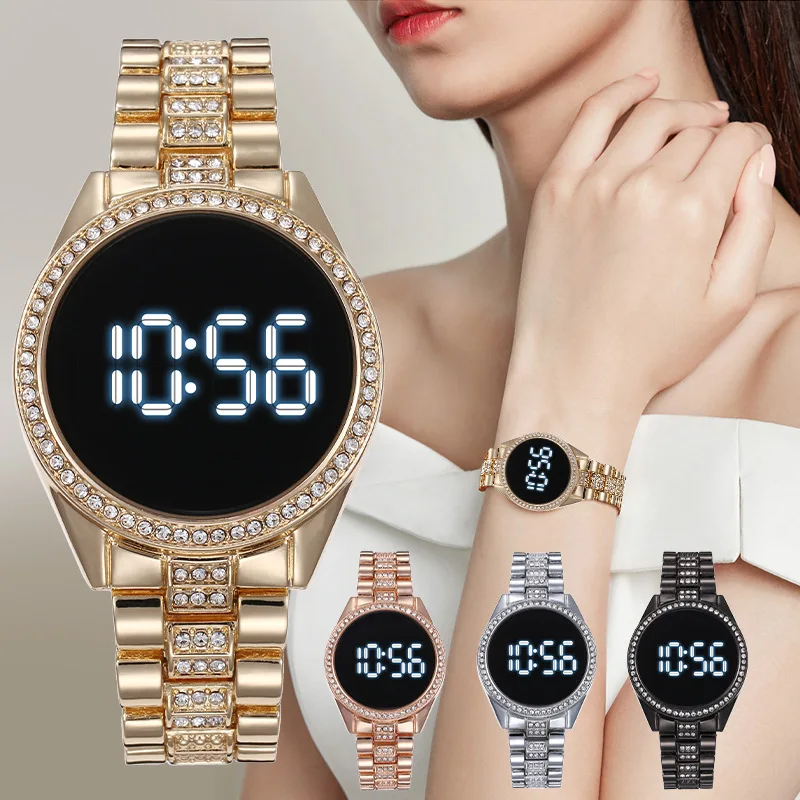LW08 Diamond Minimalist Ladies Luxury Wrist Watch Stainless Steel Band LED Women Watches