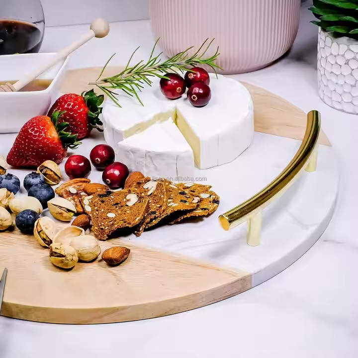 Marble Cheese Round Chopping Board for Kitchen Nature Wood Charcuterie Cutting Board