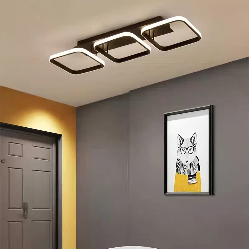 Modern Triangular LED Ceiling Light Fixture, Metal, Adjustable 3-Color Temperature, Hardwired, 85V-265V, for Living Room,
