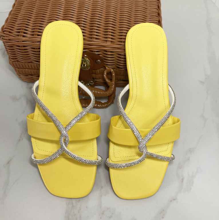 New Summer Ladies Beach Flat Slippers Women Rhinestone Cross Open Toe Slippers