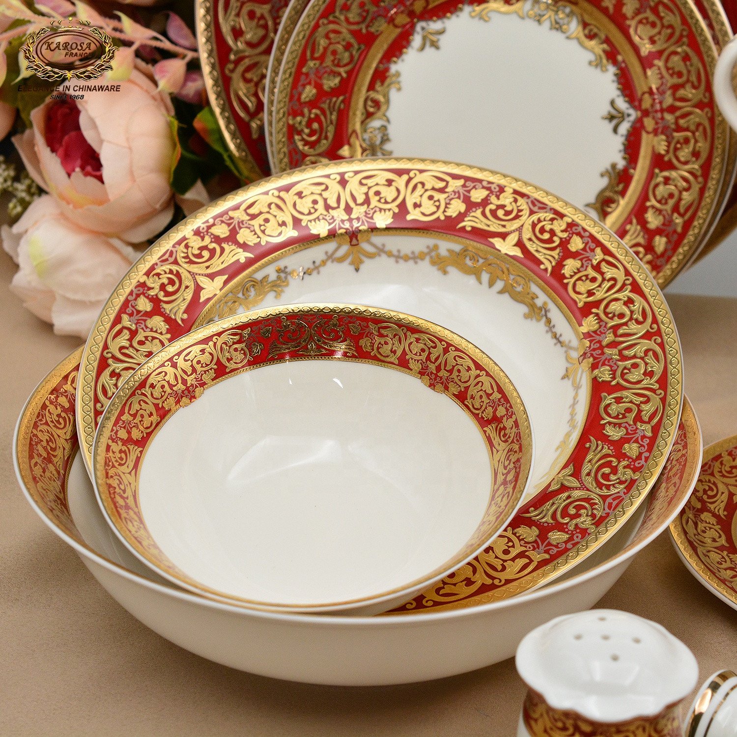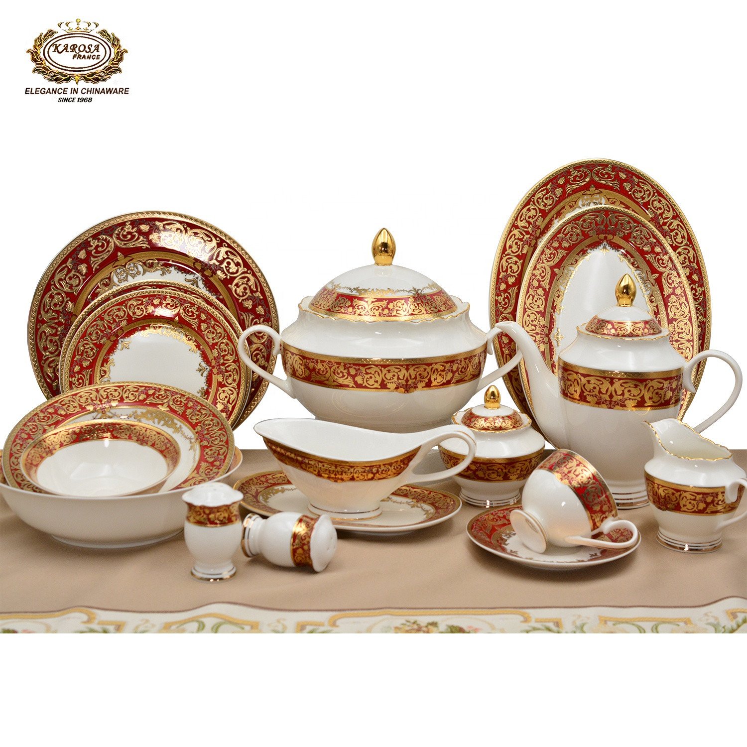 Royal Style Embossed Real Gold Dinnerware Set for 12 Persons Luxury Plates Bowls Set Fine China Dinner Sets