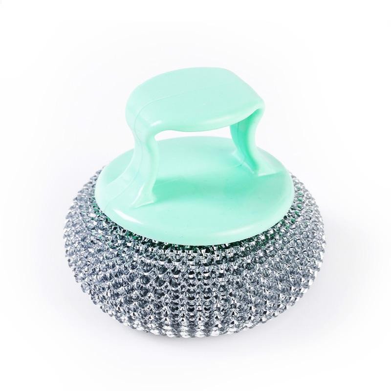 Stainless Steel Wire Ball With Long Handle Dishwashing Brush Cleaning Pot Ball for kitchen
