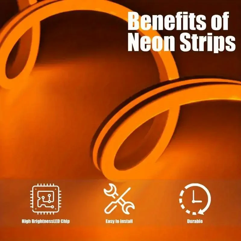 USB-Powered LED Neon Light Strip - Orange Glow, Easy to Install, Customizable DIY Design for Living Room, Kitchen, Bedroom, Bar, and More