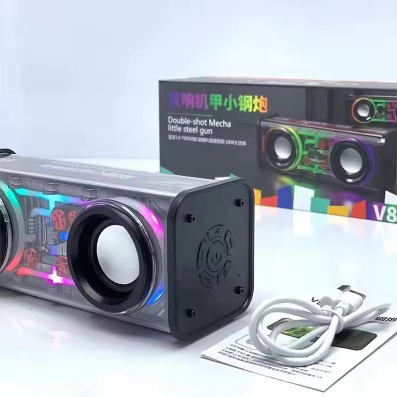 V8 Transparent Mecha Wireless Speaker Double Sound RGB Outdoor Light Portable Subwoofer Wireless BT Bass Audio Speaker