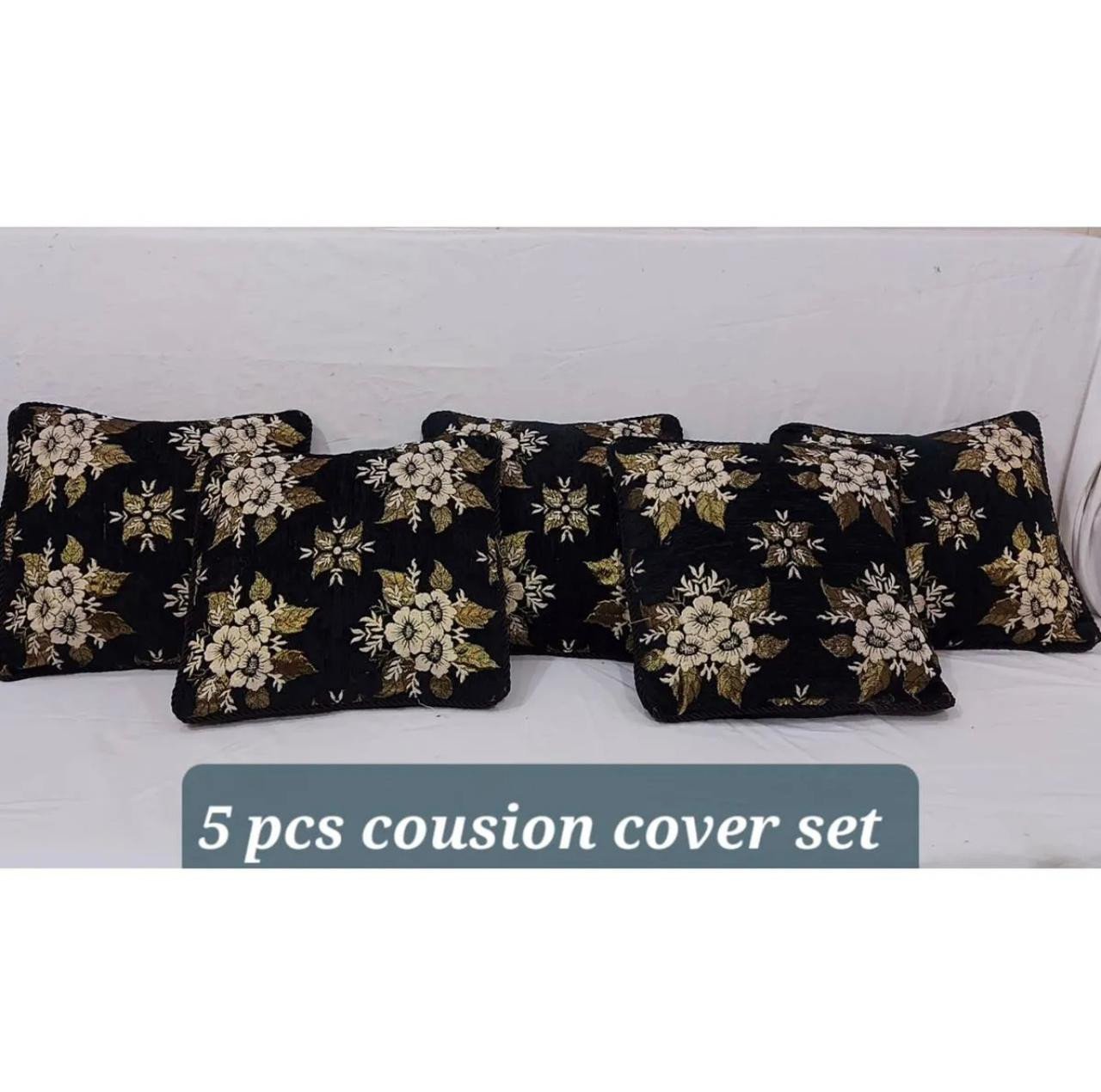 Velvet Jacquard* Cushion Covers Pack of 5pcs | Vibrant Design & Colors | Square Uniface Design | Home Sofa Cushions Covers
