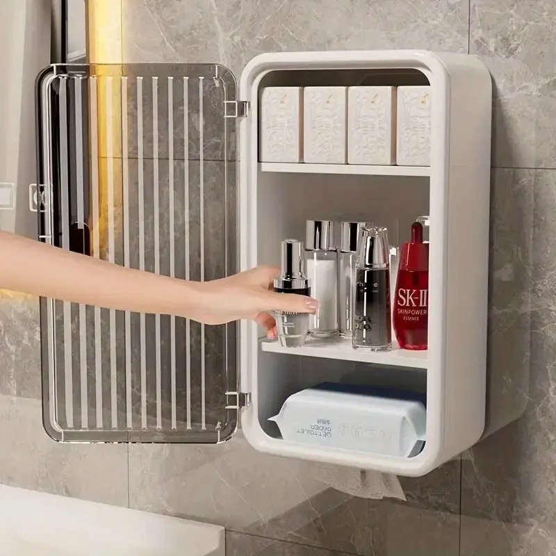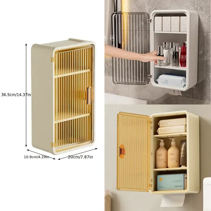 1pc Wall-Mounted Acrylic Storage Box with Flip Lid – Large Capacity, No Drilling Required, Transparent Yellow & White Design
