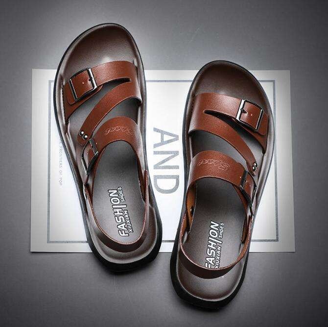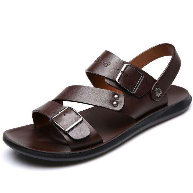 2025 New Ruvell Wholesale and Retail High Quality Men's Leather Outdoor/beach Sandals Thick Sole Summer