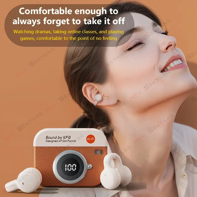 2025 New Style True Wireless Cartoon Camera with Music clip-on Headphones Couples Sports Mini Earbuds Video TWS 9D Hifi Stereo HD Calling Stereo