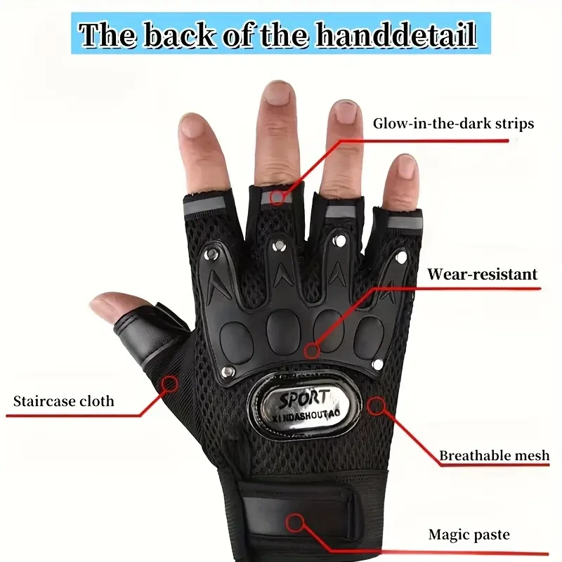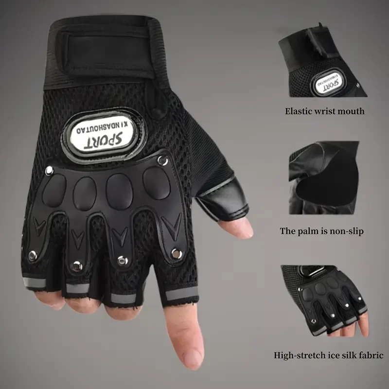 Breathable Half-Finger Fitness Gloves - Polyester Fiber, Black Sports Gloves for Outdoor Activities and Gym Workouts