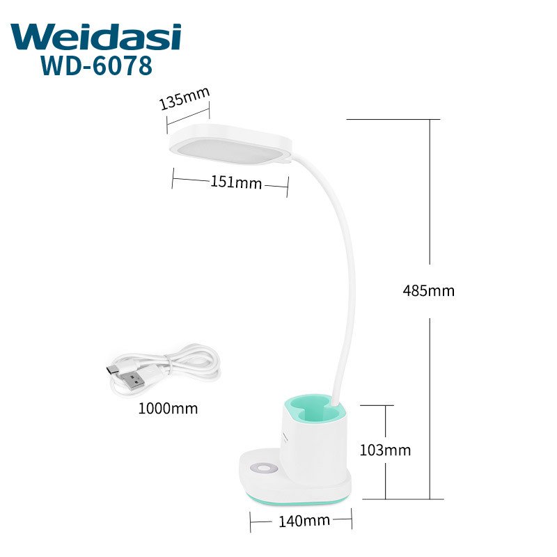 Bright Rechargeable Student Table Lamp Portable Plastic Led Bed Side Reading Desk Lamp with Pencil Holder and USB