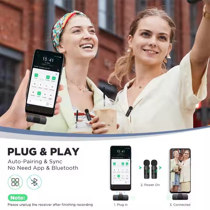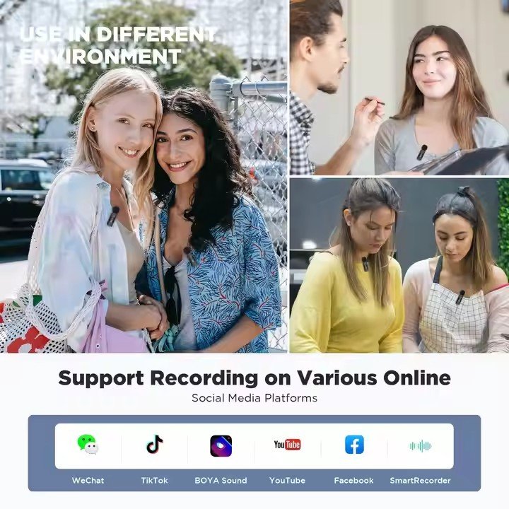 BY-V20 Microphone Wireless Microphone Lavalier 2.4GHz Portable Mic for Smartphone Wireless Recording