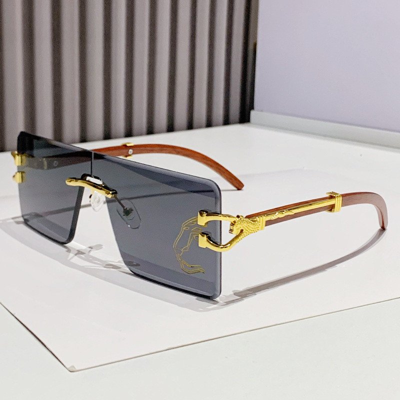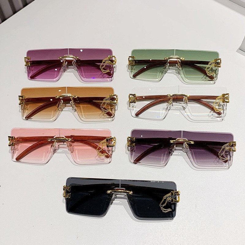 Metal Leopard Head Rectangle Rimless Sunglasses