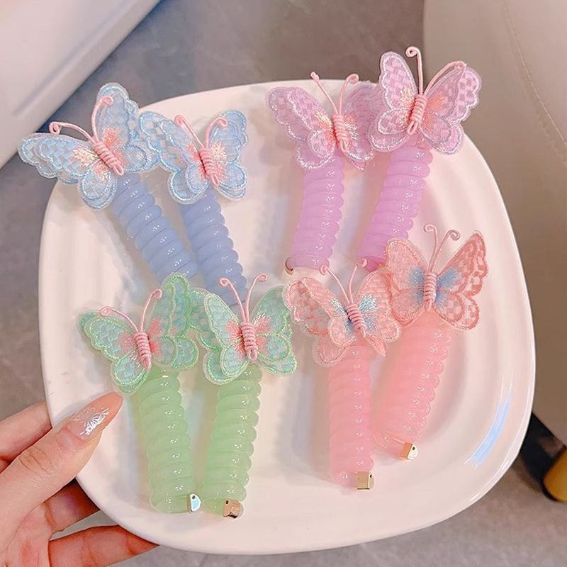 2pc Colorful Phone Wire Cords Hair Bands With Embroidered Butterfly Japanese Weaving Ponytail Artifact Tools Kids Hair Tie