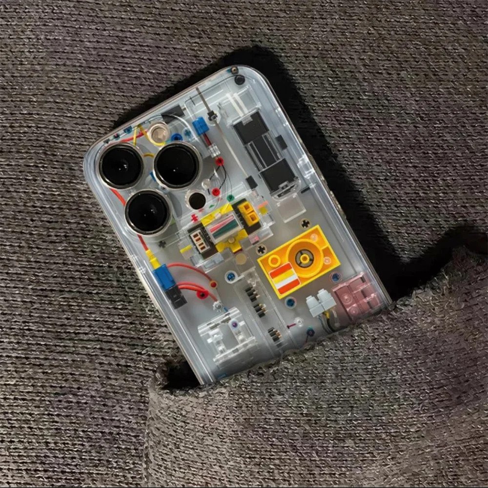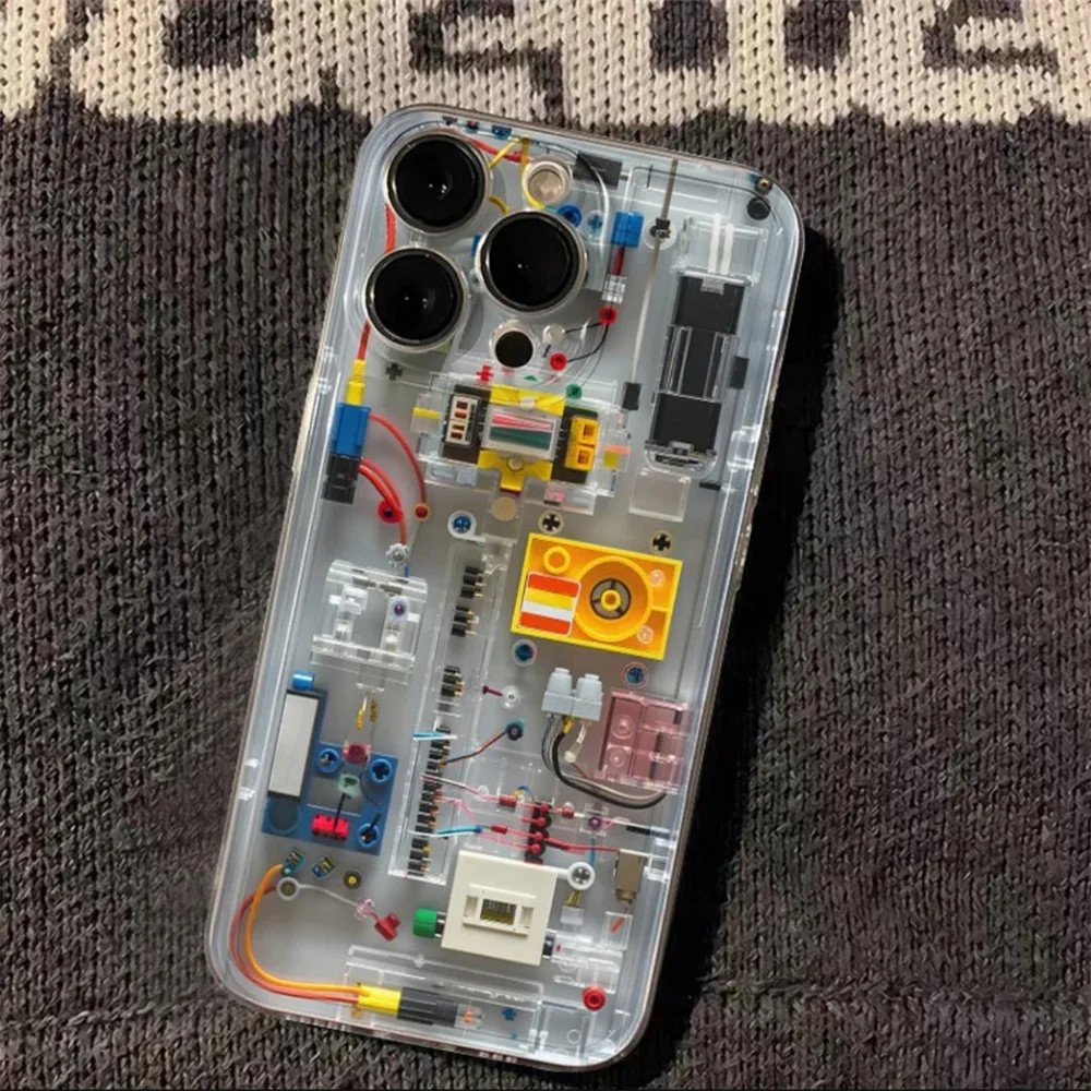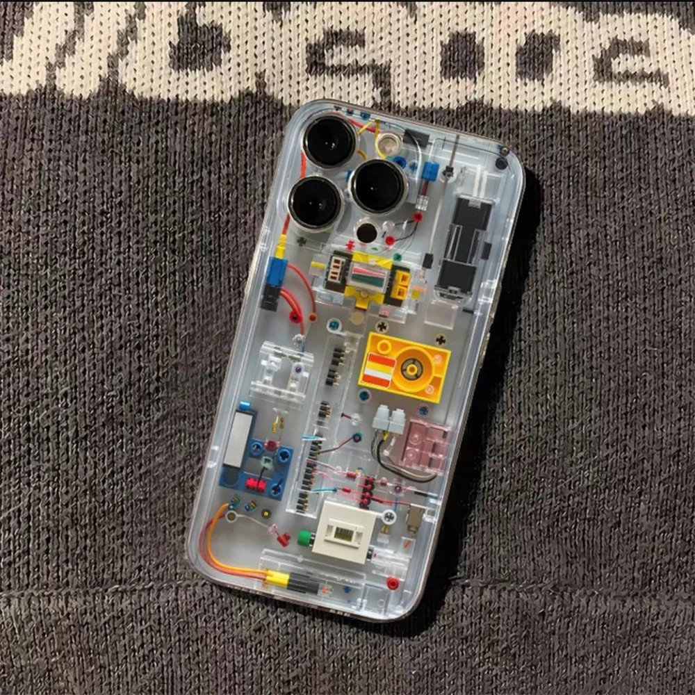 Creative Circuit Cartoon Bricks Clear Phone Case For iPhone 15 13 14 12 11 Pro Max Plus X XS XR 7 8 Lovely Soft Silicone Cover