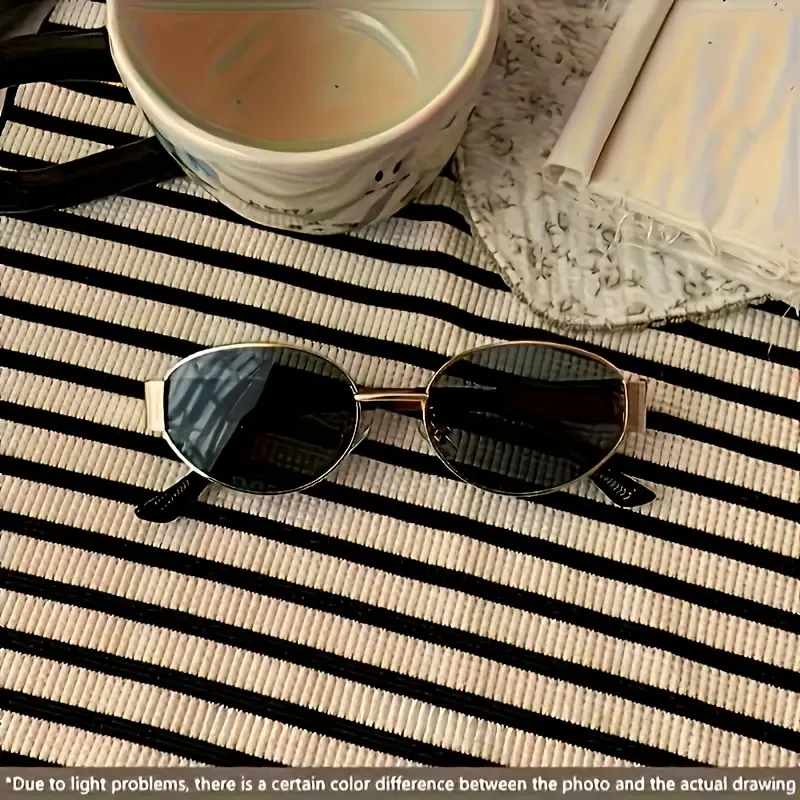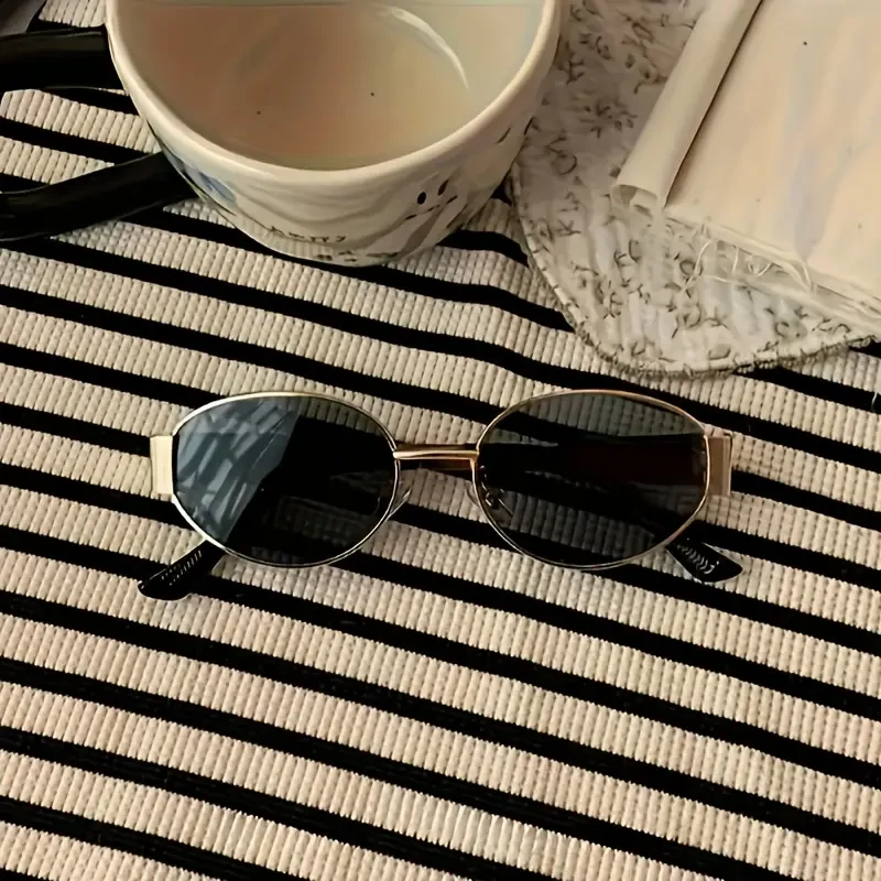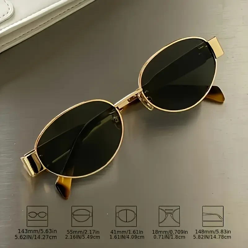 Everyday Elegance, Chic Oval Metal Fashion Glasses for Women - French Vintage Style with Golden-Tone Accents