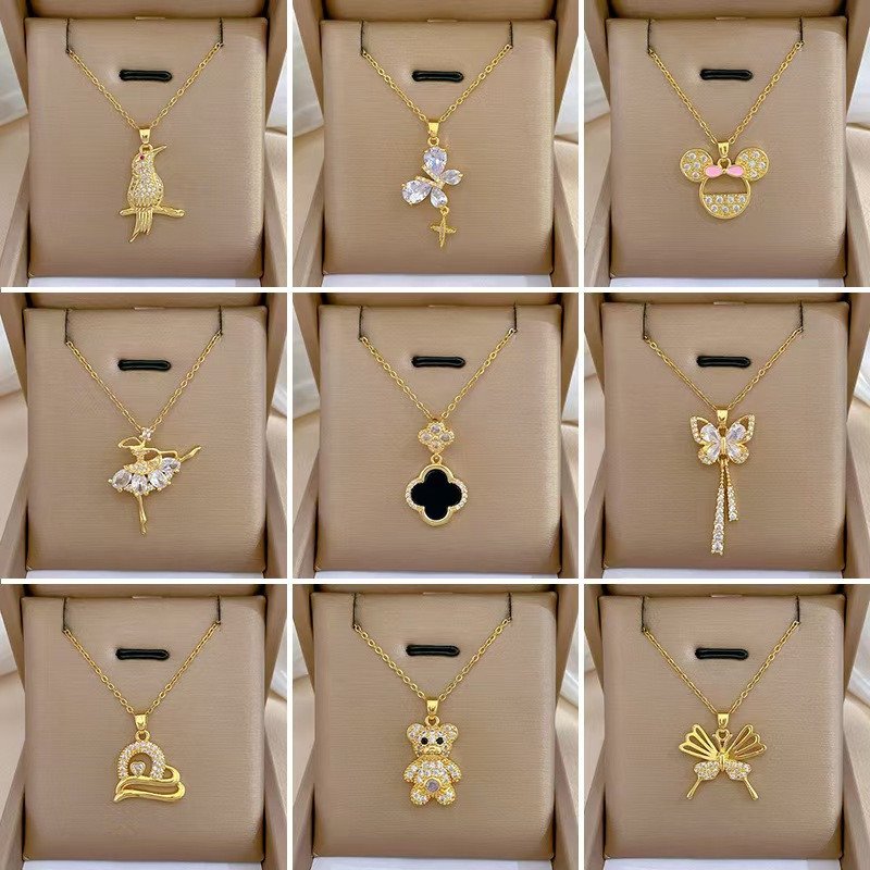 Fashion double-sided two-color gold-plated four-leaf clover Designer jewelry stainless steel jewelry collarbone chain