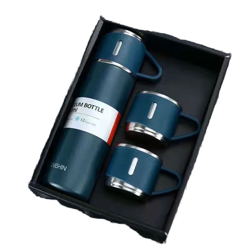 High Quality 500ml 304 Stainless Steel Vacuum Flask Business Custom Logo Thermos Set with One Cup Two Lids Gift Box for Travel
