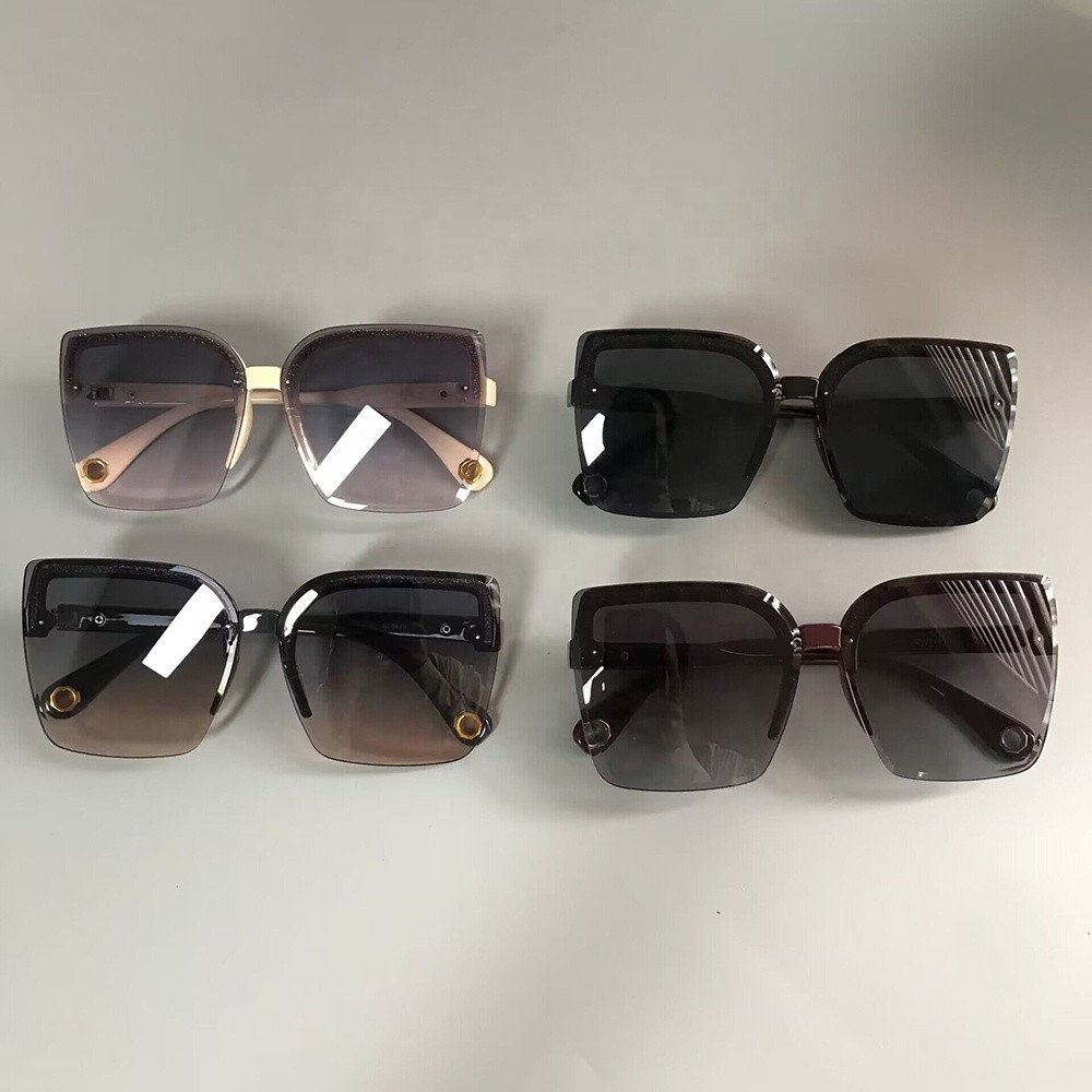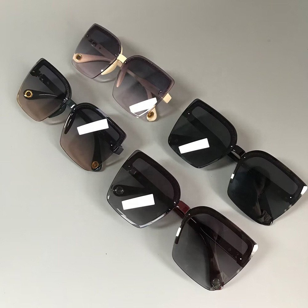 INS Popular 2023 Half Frame Square Sunglasses for Women Trendy Brand Designer Gradient Green Lens Sun Glasses Men Shades UV400