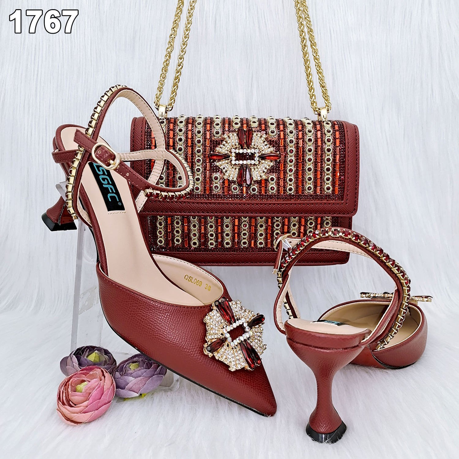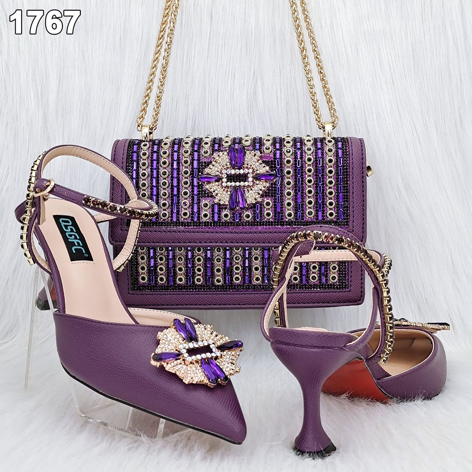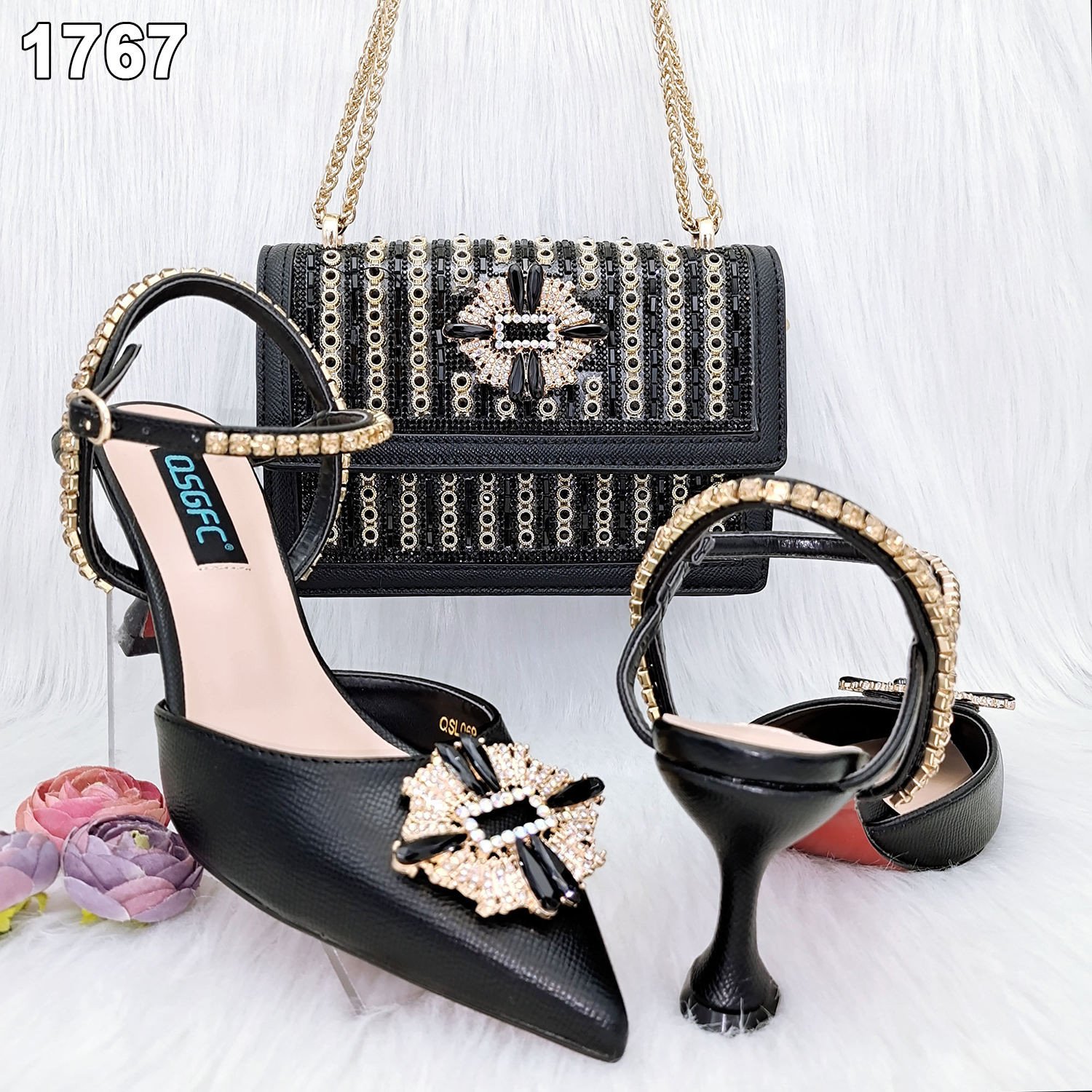 Italian Women Matching Shoe and Bag Set Decorated With Rhinestone High Heel 8cm Europe Size 38-43