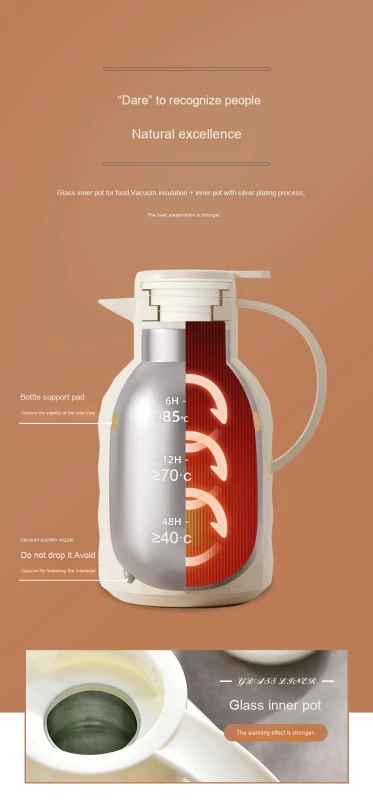 Large Capacity Insulated Plastic Kettle for Home & Dormitory Use Portable Hot Water Bottle with Glass Inner Liner for Students
