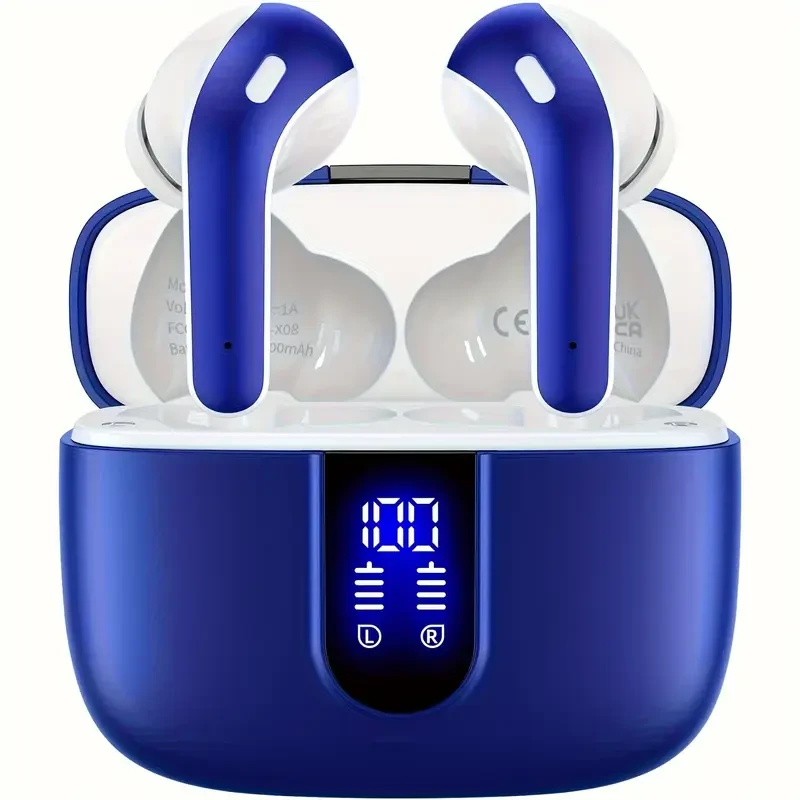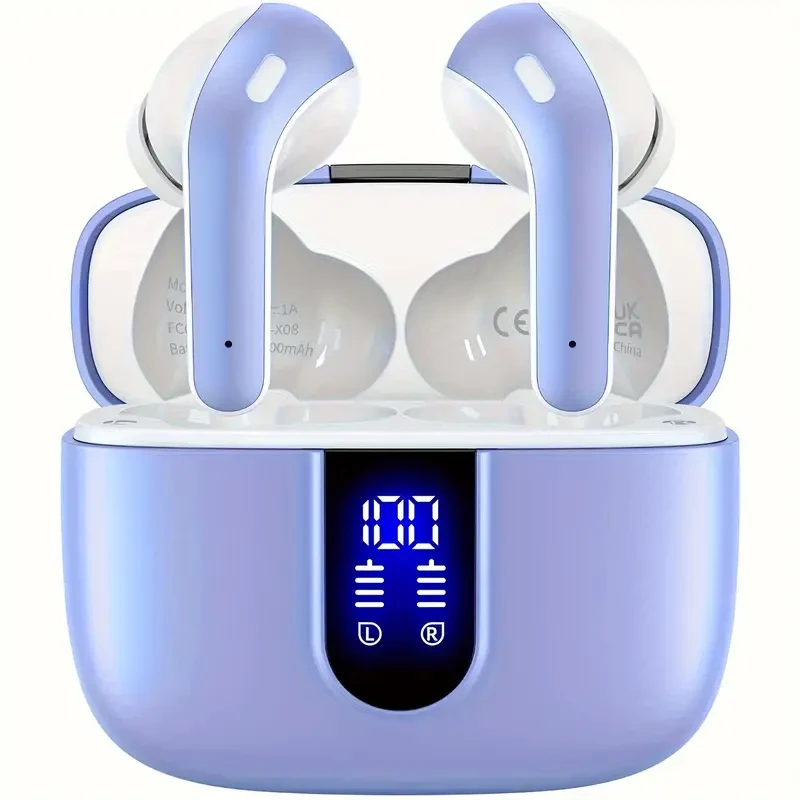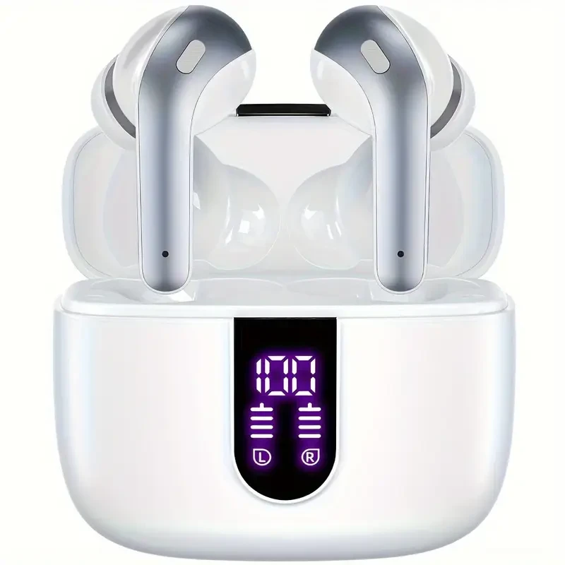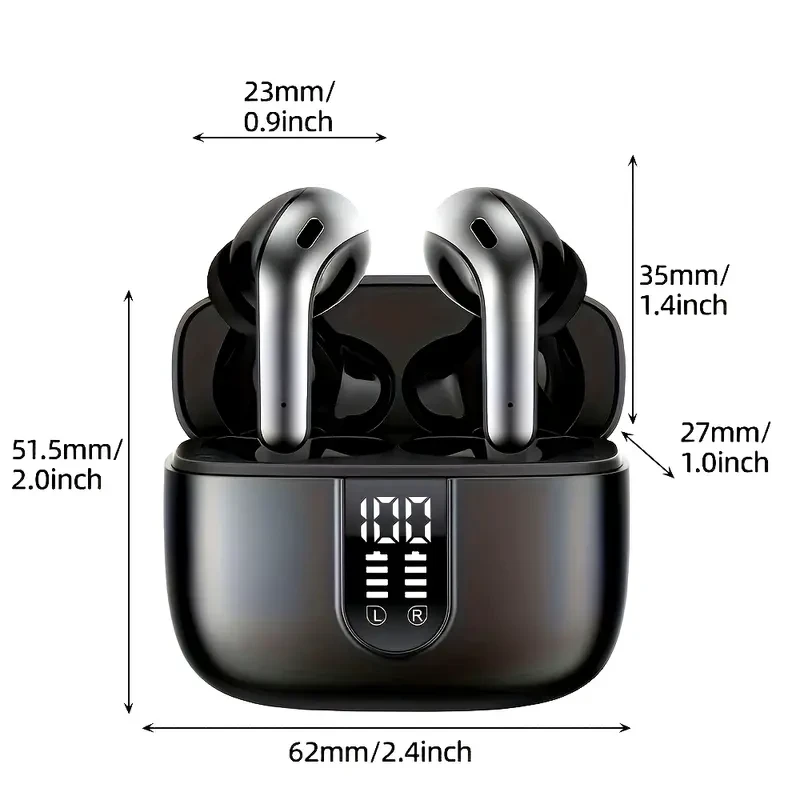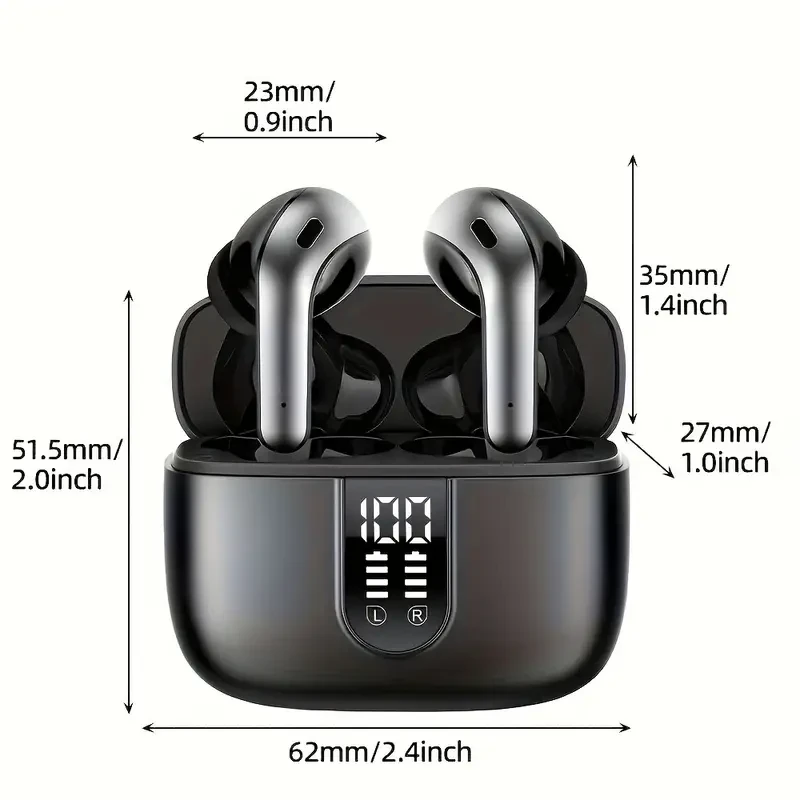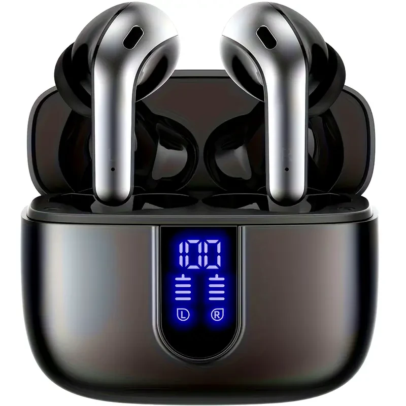LIFEBEE Sleek Black Wireless Earbuds with 60H Playtime, LED Power Display & Type-C Fast Charging Case - Noise-Canceling In-Ear Headphones for Gaming, Business & Sports, Earbuds Wireless