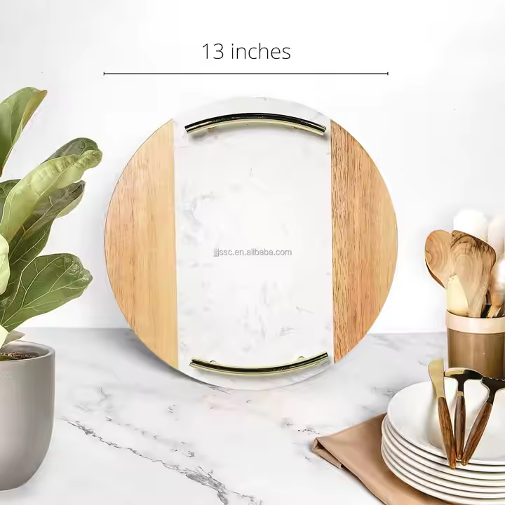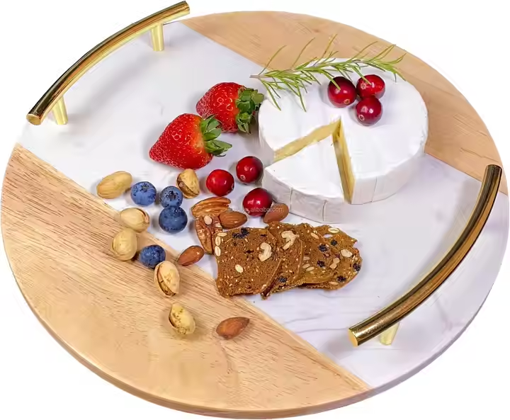 Marble Cheese Round Chopping Board for Kitchen Nature Wood Charcuterie Cutting Board