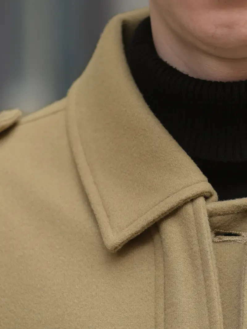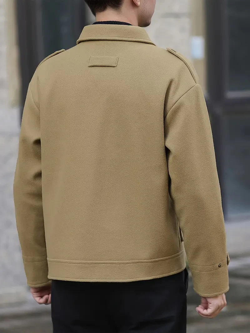 Men's Stylish Autumn/Winter Warm Polyester Casual Jacket with Lapel Collar, Zipper Closure, and Pockets - 100% Polyester Solid Color Loose Fit Coat