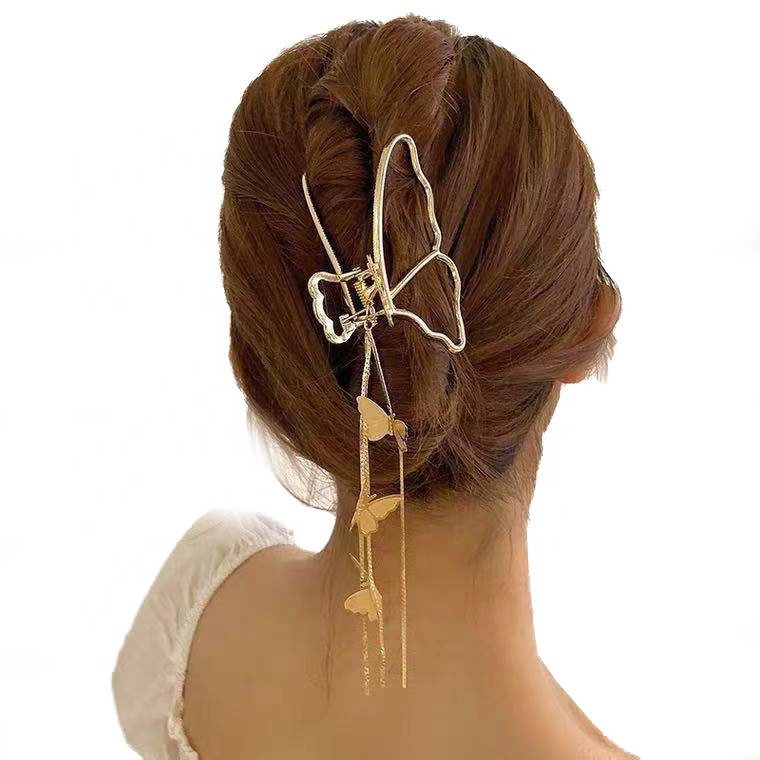 MIO 2024 High Quality Luxury Metal Wiggle Hair Claw Clip With Beautiful Butterflies Hair Accessories For Lady Women Girls