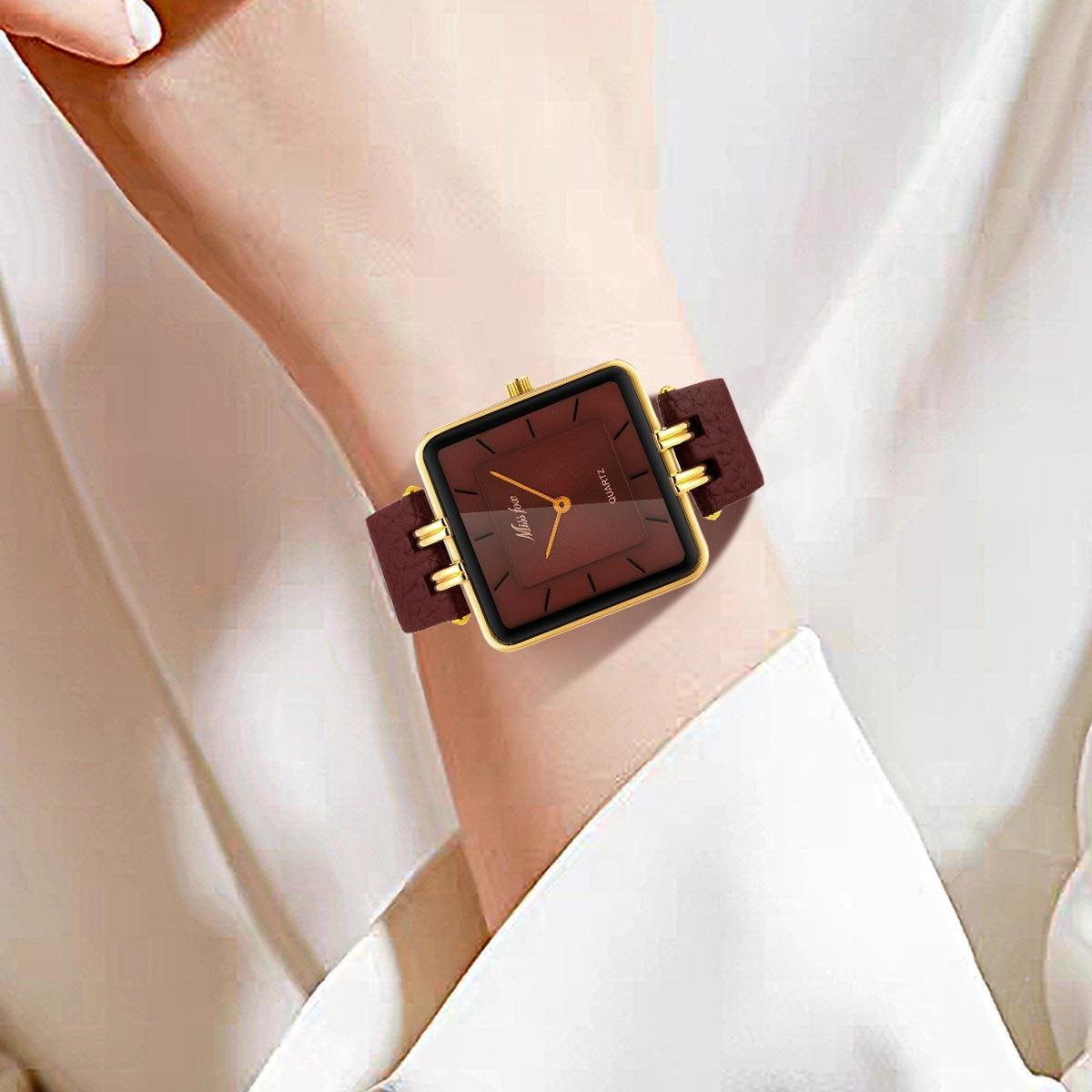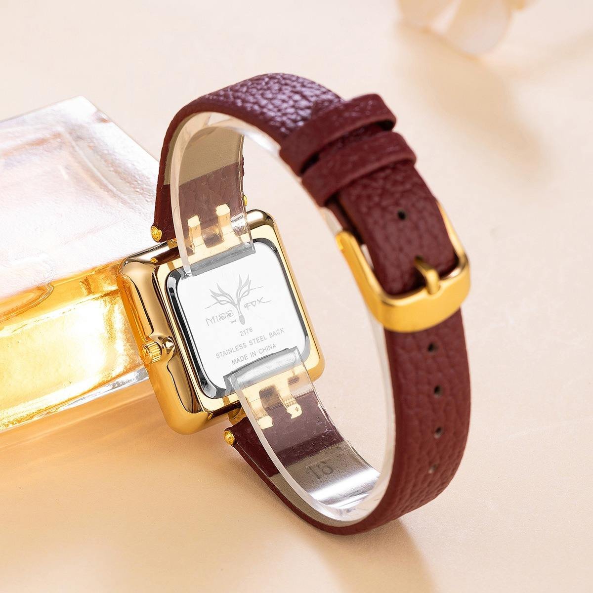 MISSFOX Women Watch Business Clock Luxury Watch for Women Simple Square Wine Red Waterproof Quartz Watches for Women Relojes