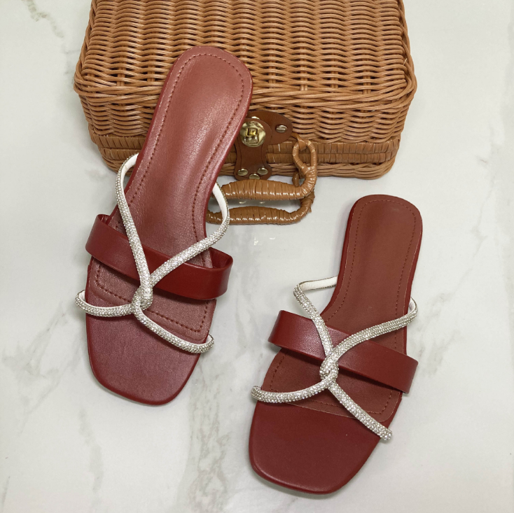 New Summer Ladies Beach Flat Slippers Women Rhinestone Cross Open Toe Slippers