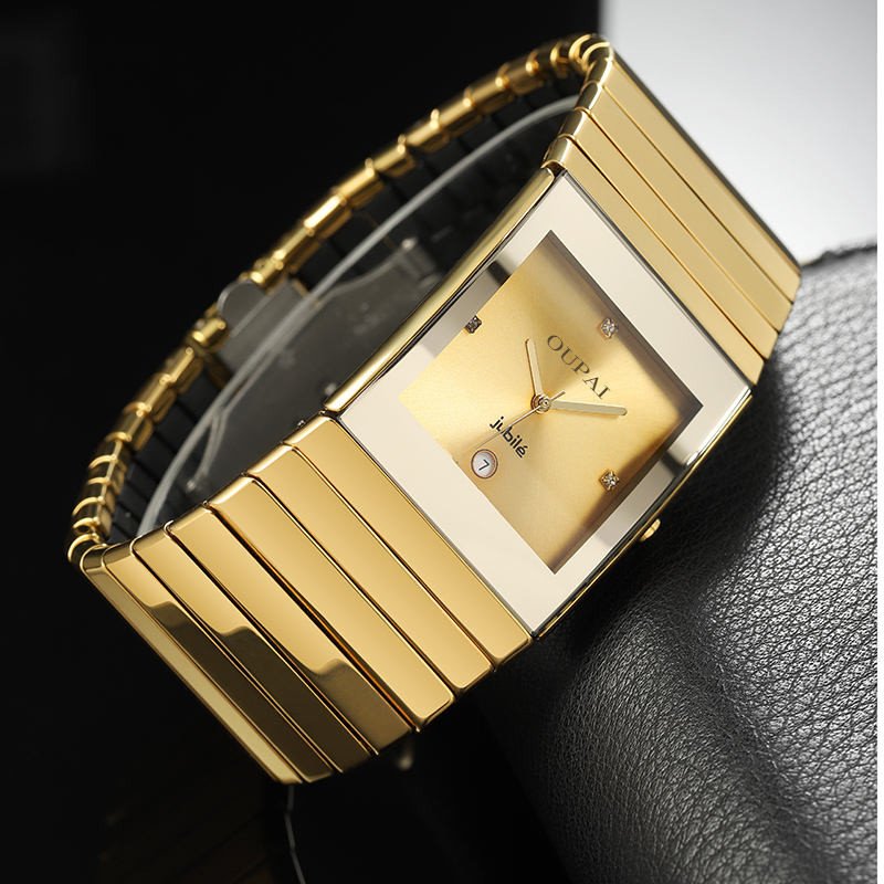 OUPAI Old Classic Rectangle Watch Quartz Golden Ceramic Square Wristwatch Man Waterproof Black Ceramic Jublie 34mm Wide