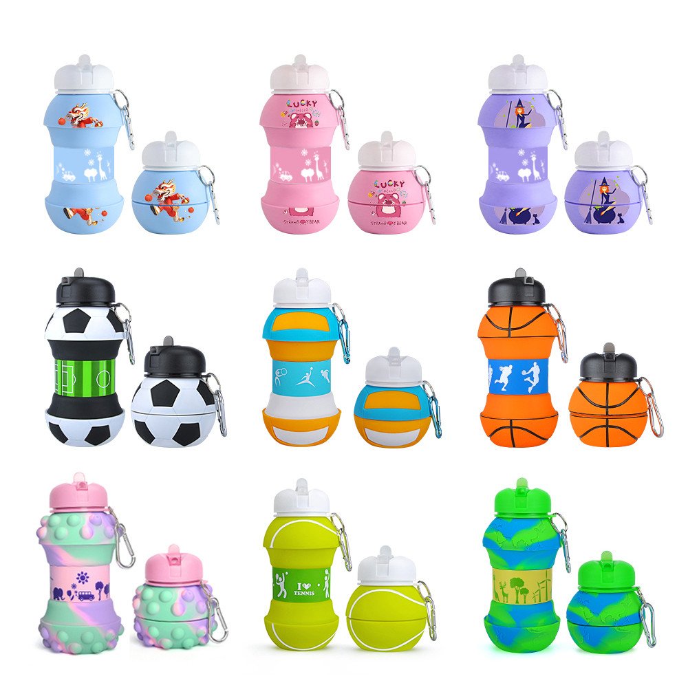 Patent Reusable Eco-Friendly BPA Free Sports Football Soccer Cute Silicone Gourd Folding Collapsible Children Kids Water Bottle