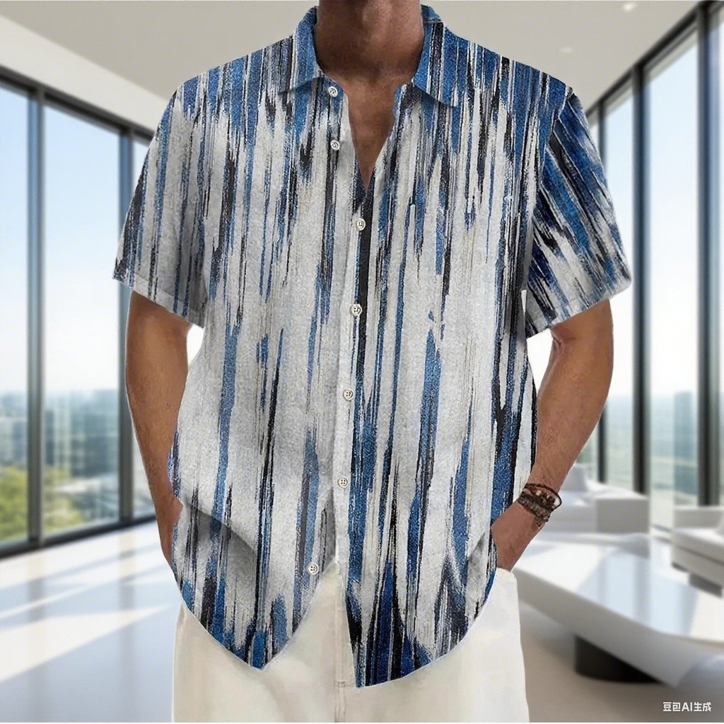 Premium Men's Summer Casual Short Sleeve Knit Shirt Customizable Floral Hawaiian Beach Print Satin Loose Fit Matching Couples'