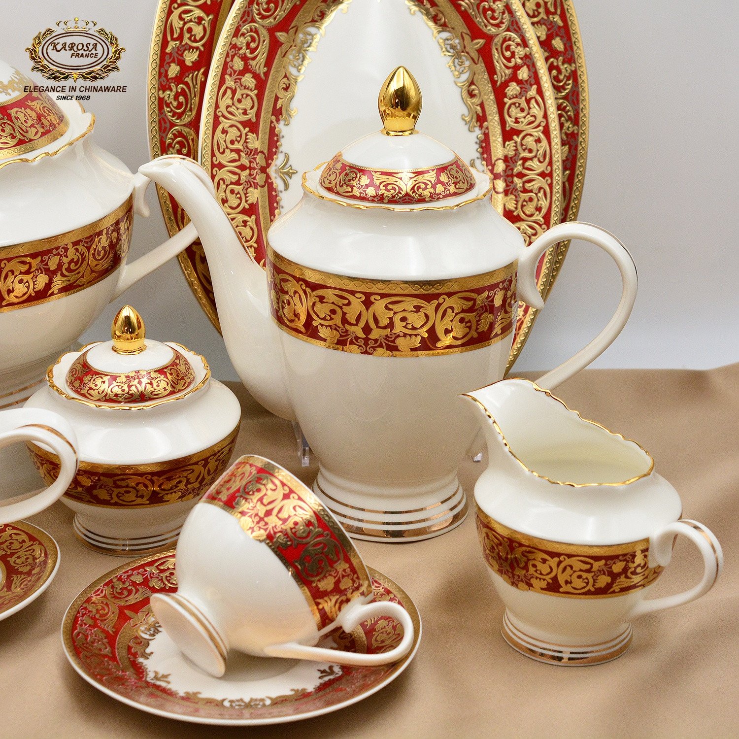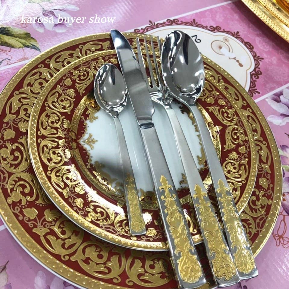 Royal Style Embossed Real Gold Dinnerware Set for 12 Persons Luxury Plates Bowls Set Fine China Dinner Sets