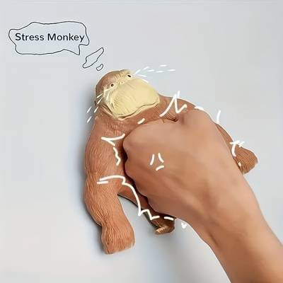 Cute muscular monkey squishy doll for stress relief and fun. Light brown with yellow accents.