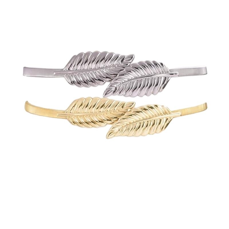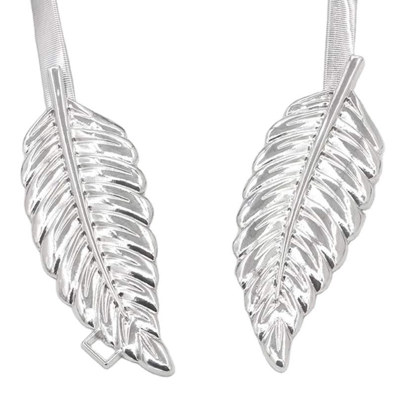 Skinny Metal Chain Waist Belt Gold Women Belts Vintage Elastic Leaf Shape Belt Wedding Design Stretch