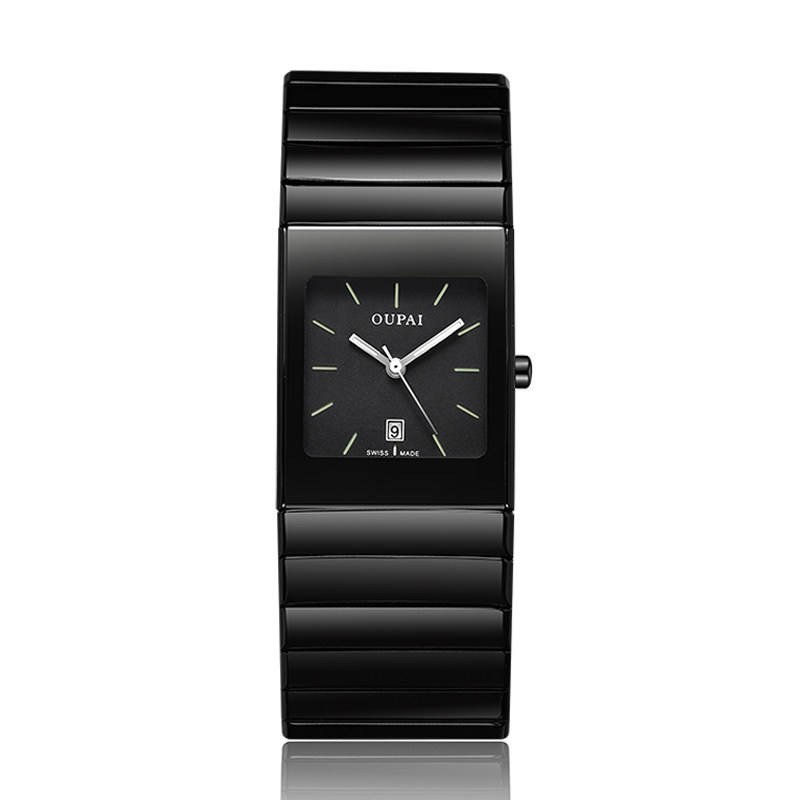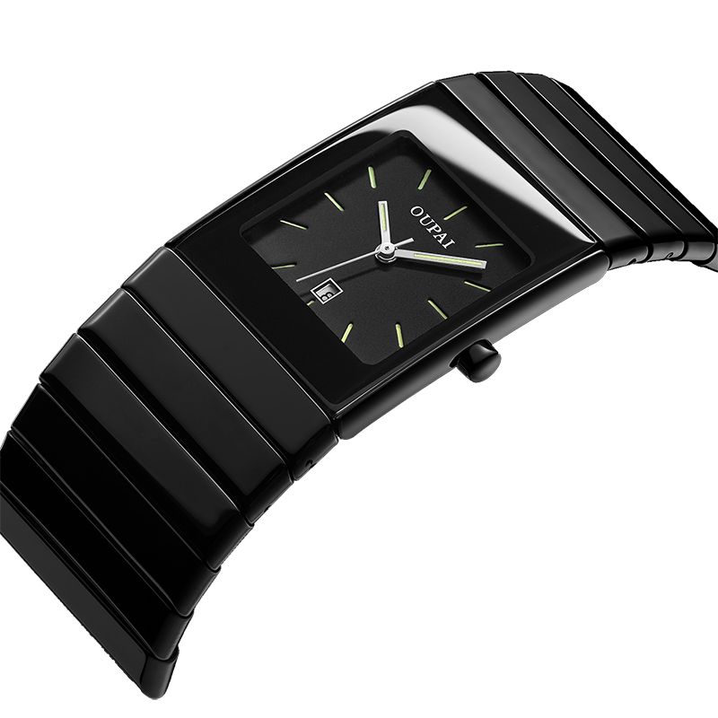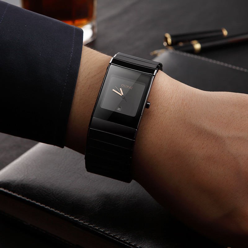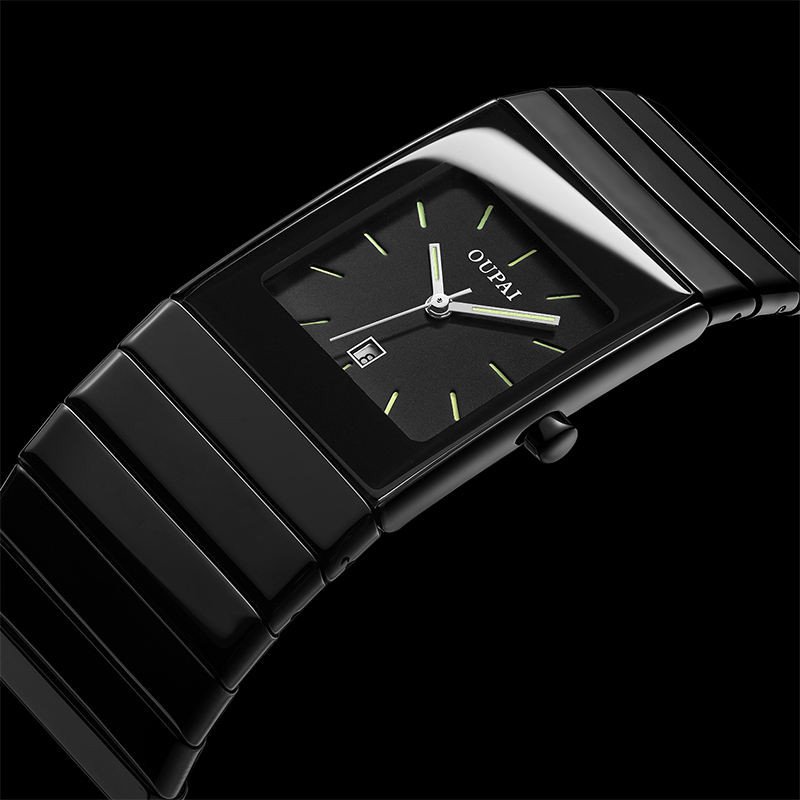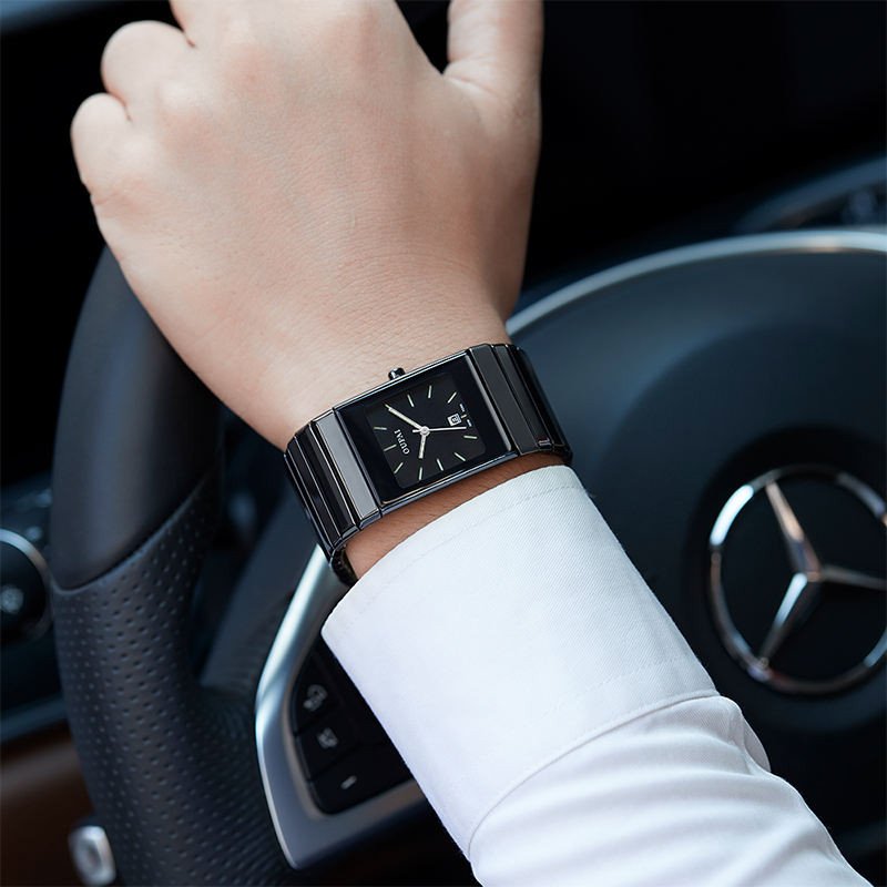 Square Black Ceramic Watch Man Ultra Thin Business Luminous Waterproof Rectangle Antique Design Wrist Watch Classic