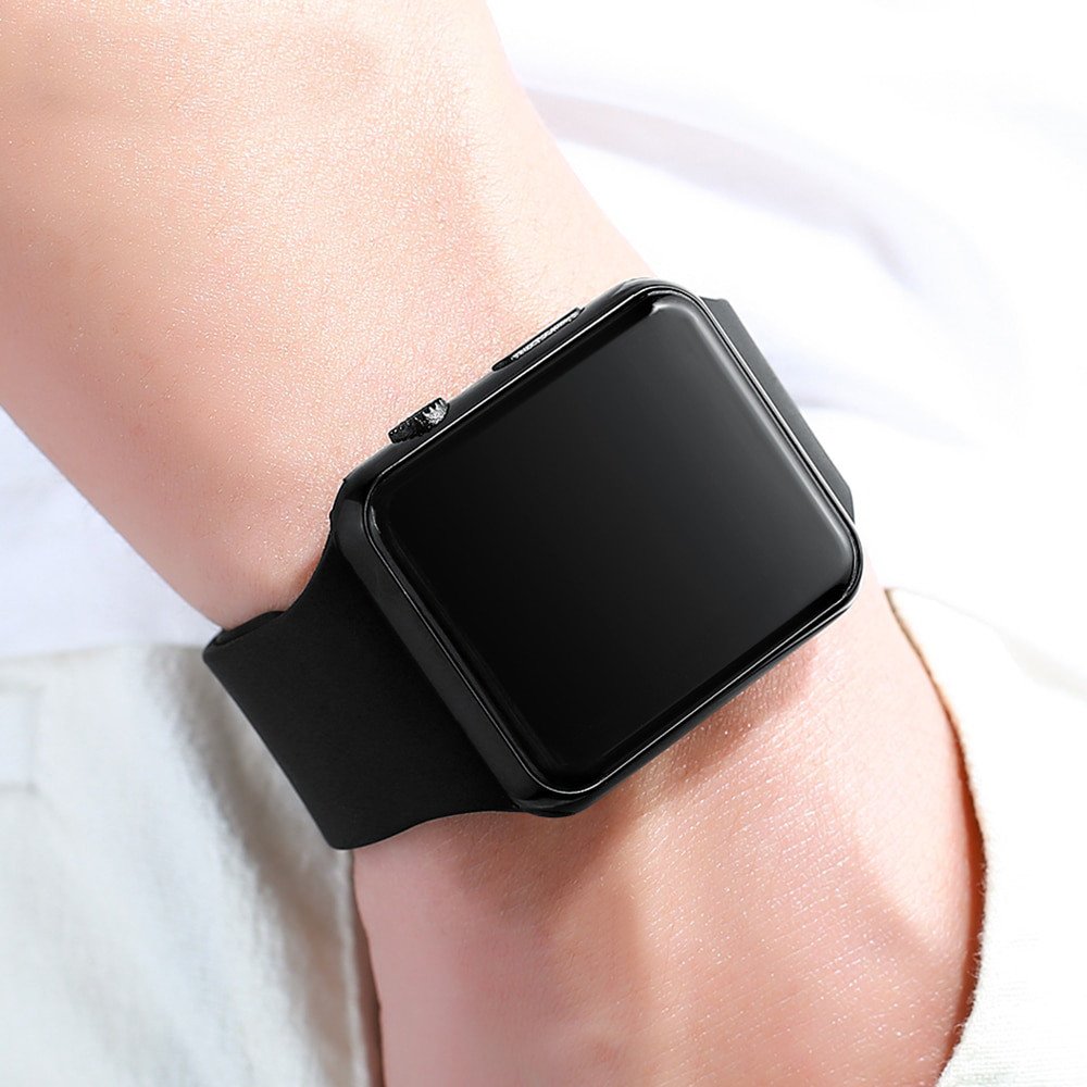Square Mirror Face Silicone Band Digital Watch Red LED Watches Sports Wristwatch for Unisex