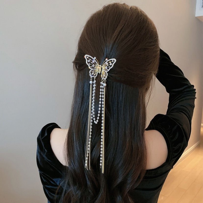 Summer metal hair clip Women's hair clip Elegant hollow diamond pearl butterfly claw clip