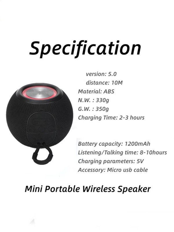 TG337 BlueTooth Speaker Wireless Colorful Lamp Fabric USB TF Aux Subwoofer Outdoor Portable Mini Speaker