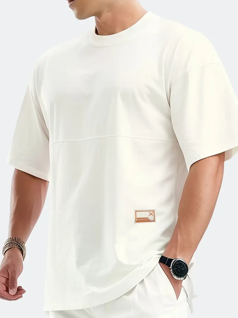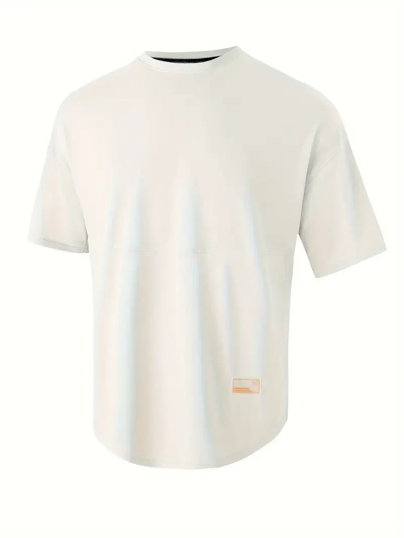 Two-piece Men's casual sports T-shirt summer round neck splicing outdoor running fitness clothing short-sleeved off-shoulder loose casual versatile