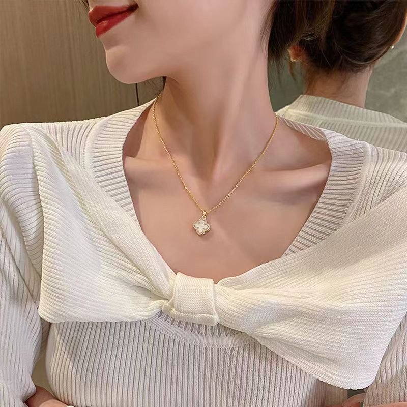 Women's Four-Leaf Clover Stainless Steel Necklace Luxury Small Aroma Style Light Tempered Fashion Jewelry Accessory Collarbone